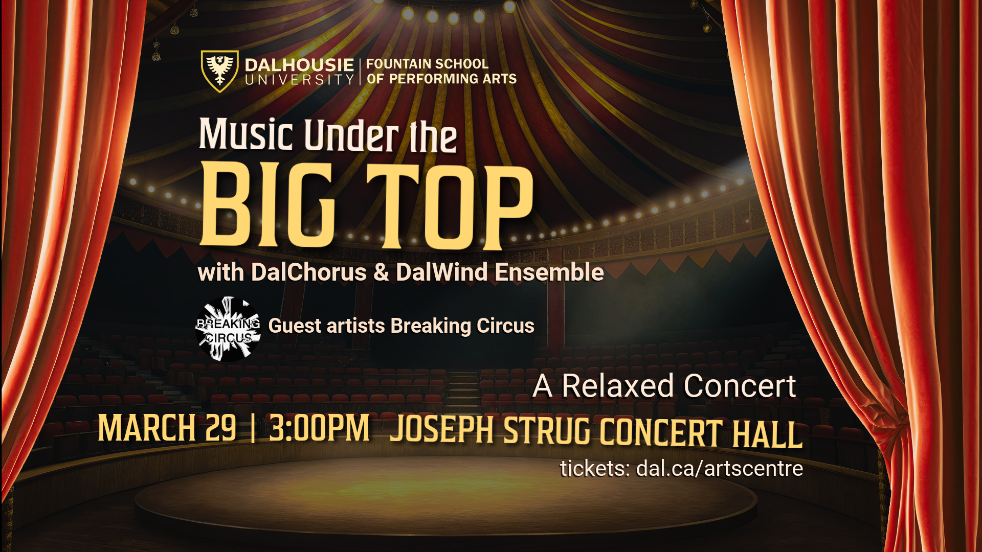 Come one, come all to the Fountain School’s joyful matinee concert of circus-themed music with DalChorus, ý's Wind Ensemble and playful clown artistry from Halifax’s own, Breaking Circus!