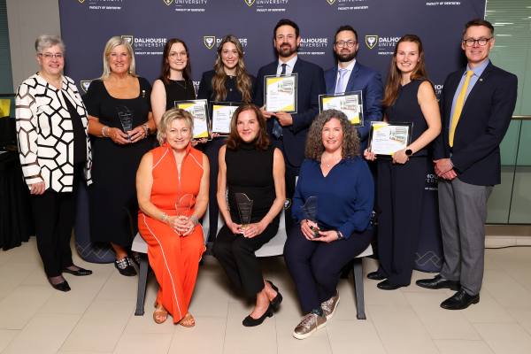 2025 Alumni Award winners (back row l-r): Simone Abbass, Heather Carr, Rachel Skanes, Brooke Kinden, Cory Sears, Bobby Nadeau, Lindsay James, Ben Davis, dean of the Faculty of Dentistry; (front row l-r): Terri Logue, Jennifer MacLellan, Michelle ZwickerÌý Ìý(Photos by Nick Pearce)ÌýÌý